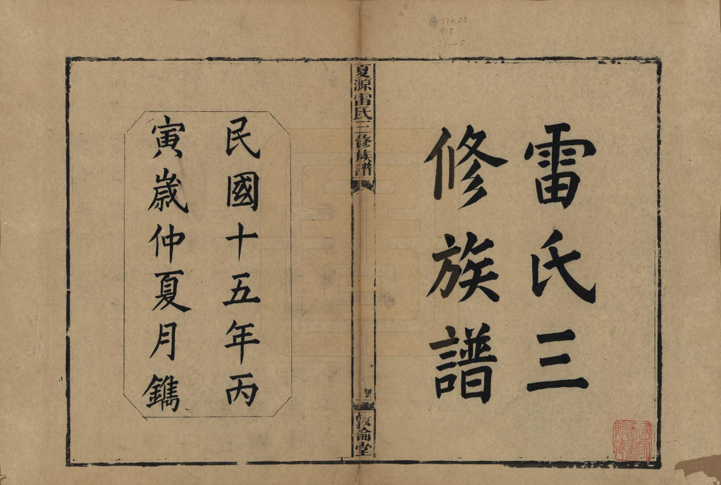 GTJP0760.雷.湖南湘乡.夏源雷氏三修族谱.民国15年(1926)_001.pdf